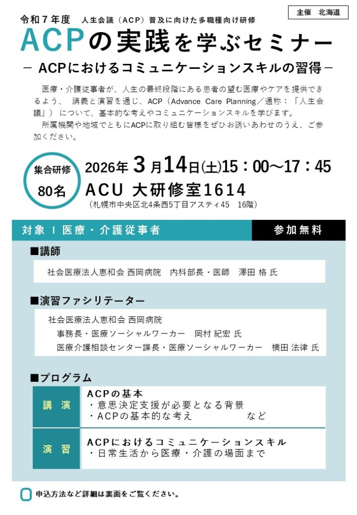 会場:ACU大研修室1614(札幌市中央区北4条西5丁目アスティ45 16階)